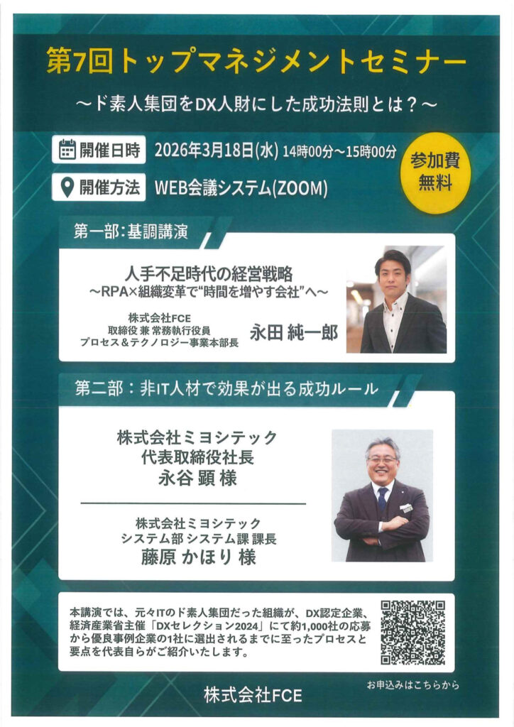このたび株式会社ミヨシテックは、株式会社FCE主催セミナーにて登壇いたします。