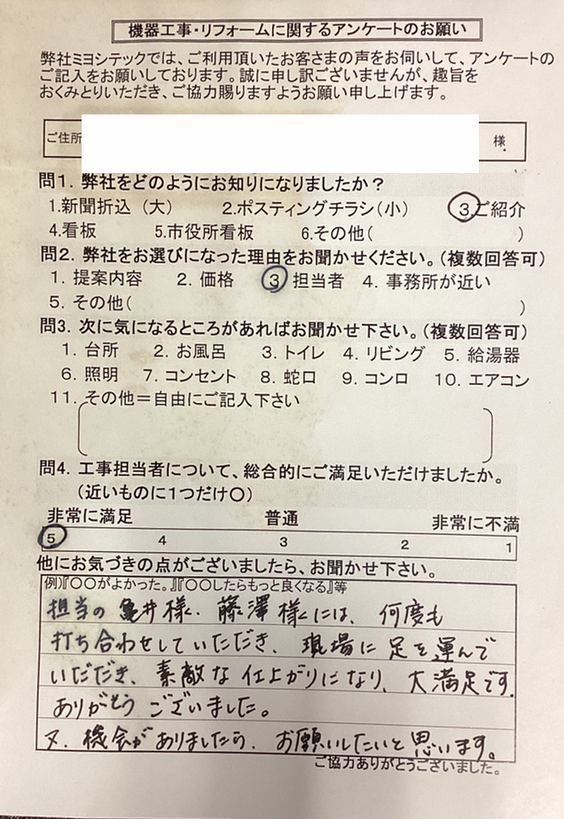 大阪の住宅設備工事ならミヨシテック / お客様の声 / 素敵な仕上がりになり、大満足です。(寝屋川市 N様邸 リノベーション工事 アンケート)